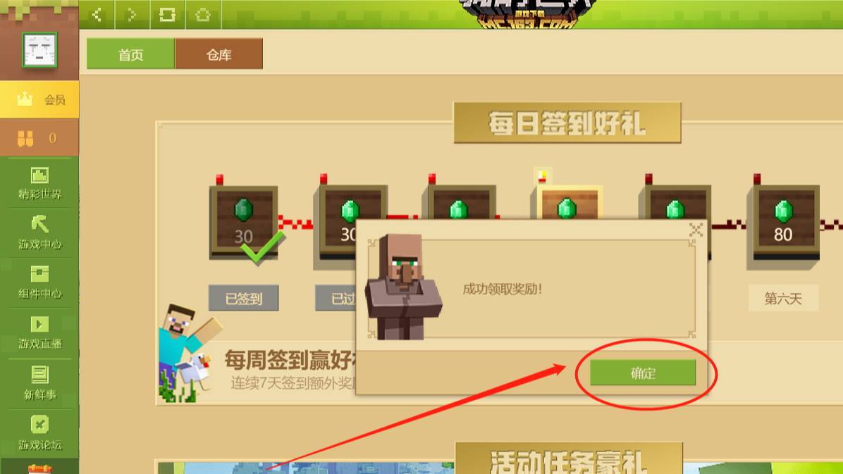 然后可以看到在首页有每日签到好礼,点击下面的点击签到。