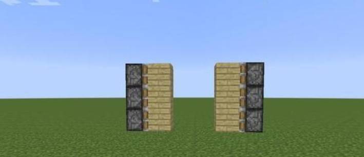 第一步:首先,每一边都要使用粘型活塞,一边要3个,大家可以参考图片。然后模板制作的一个门的外形,不过这个时候还没有任何功能。