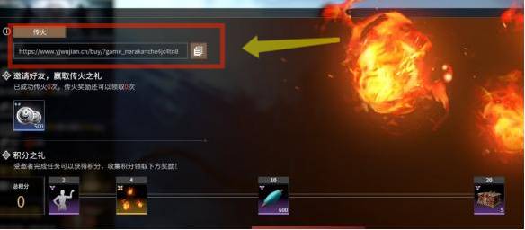 2.然后查看传火码,有网址链接和邀请码两种形式。您可以将专属链接分享给好友,好友通过您的专属链接成功购买游戏后,即达成传火。如果分享的是邀请码,那么在第一次输入角色名字时,可同时输入邀请码,进行绑定。