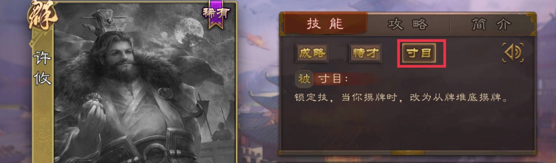 另一个被动技能寸目,当你摸牌时,改为从牌堆底摸牌。