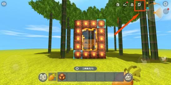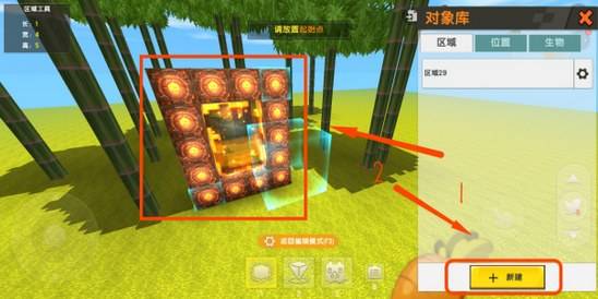 1、打开物品栏上面的工具模式,新建一个位置,框选住地心门。
