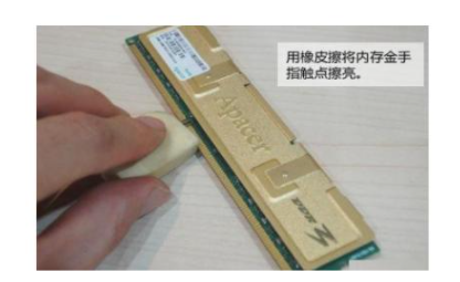 3、内存松动引起的主机无法开机,切断主机电源,尝试将主机内存条拔下来,用橡皮擦拭金手指,复装之后,开机。