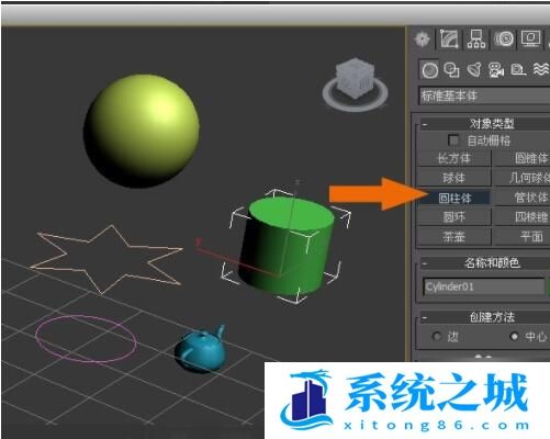 第二步,然后选择【标准基本体】在透视图中绘制出一个球体和一个圆柱体;