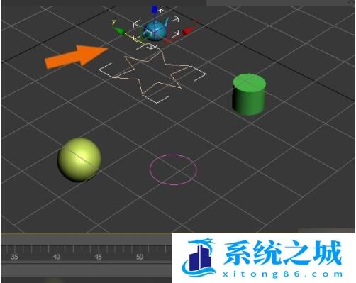 第五步,最后通过空格按键来选择锁定按钮,在透视图中,选择星形和茶壶图形,移动到左边。