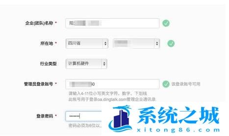 03 随后会进入详细的注册页面,先输入企业团队的名称,所在的省市,行业类型,接着还需要输入管理员账号,