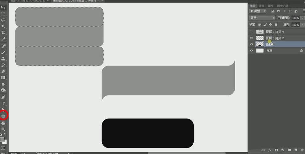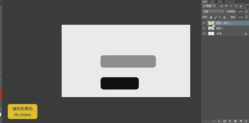 【Ctrl+J 】【复制 】2层,选择中间【图层 】用【矩形选框 】填充中间缝隙,选择复制的2层,按【Ctrl 】获得选区,选择中间【图层 】按【Delete 】删除,如图所示。
