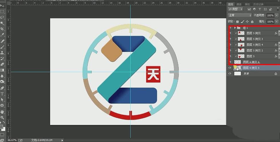 选择所有【图层 】【Ctrl+G 】【编组 】,【新建图层 】【矩形选框 】画一个矩形【填充 】#cb0e0e深红色,【新建文字 】【方正综艺简体 】天【填充白色 】【调整 】大小 位置居中。