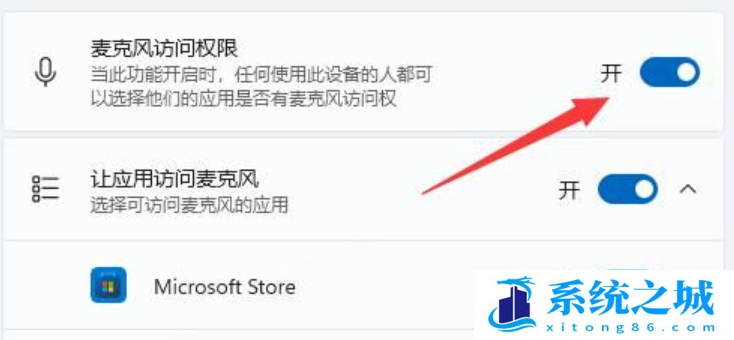 5、勾选开启“麦克风访问权限”,还可以单独选择哪些软件可以访问麦克风,完成。