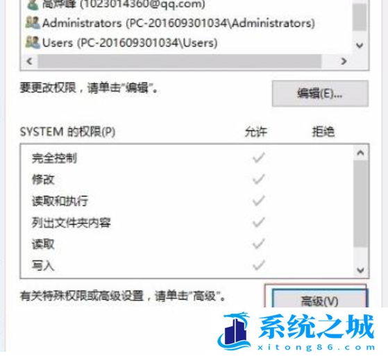 8、然后再temp安全选项卡中点击“编辑—>更改权限—>主体”。