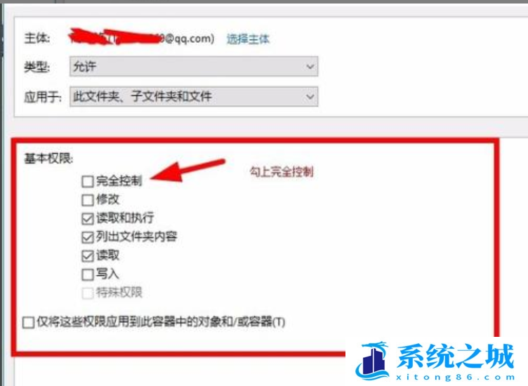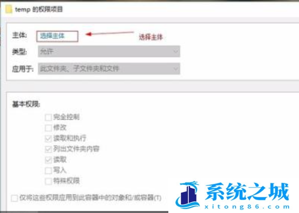 9、主体就是所添加的用户,并把下方的√全部选上。