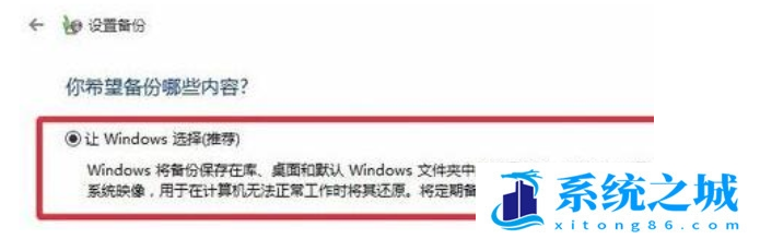 4、点击右边的设置备份按钮,选择让windows给推荐即可,点击下一步,等待系统备份完成即可。