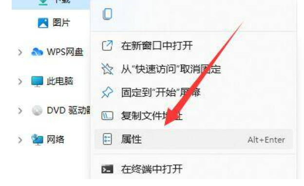 6、修改好之后,打开文件资源管理器,右键下载文件夹选择“属性”。