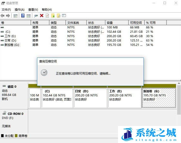 2、接着在分区列表中,右击分区的部分,并点击“压缩卷”(如图所示)。