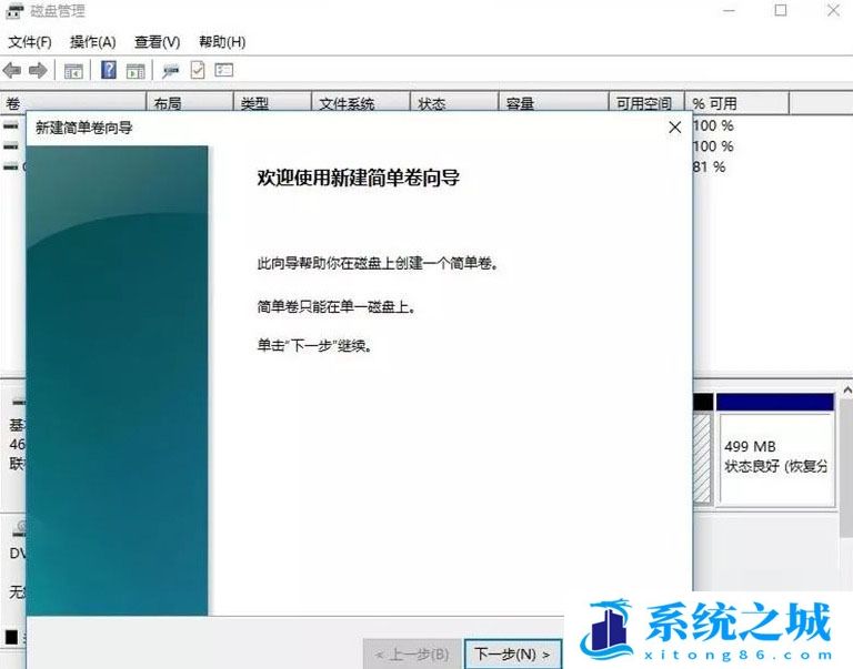 4、然后右击点击空间,选中“新建简单卷”,并单击“下一步”(如图所示)。
