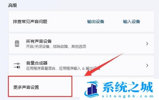 2、声音设置窗口,高级下,点击【更多声音设置】;