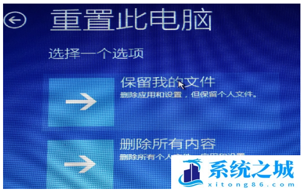 2.鼠标点击重置此计算机,大家根据您自己的需要选择是否保留已安装的软件、应用程序还有数据等等。