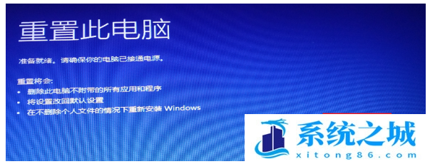 3.确认“重置此电脑”之后,点击:“初始化”。