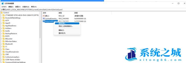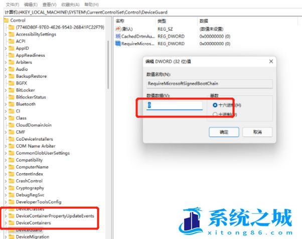 1、打开运行,输入regedit,调出注册表 找到 Device Guard,将默认值改为 0。