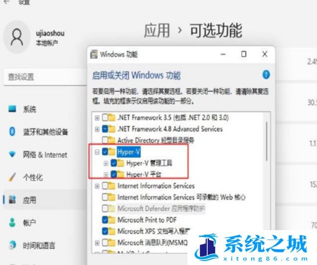 1、 打开控制面板-程序-启用或关闭Windows功能,可能你的电脑上发现没有Hyper-V,连vm也无法使用(如果你的打开有的话就如下图勾上,重启电脑即可),没有Hyper-V需要安装,可以转到下面2步骤安装。
