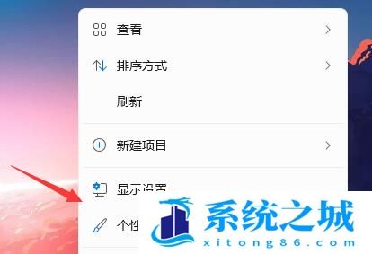 1、win11正式版没任务栏怎么解决?首先鼠标右键桌面空白处,选择其中的“个性化”;