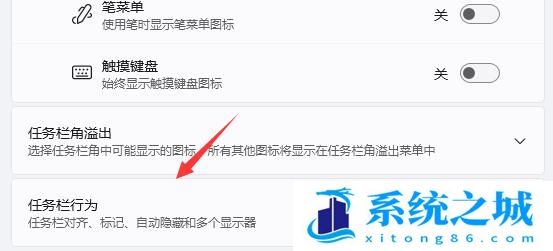 3、然后找到并鼠标点击其中的“任务栏行为”;