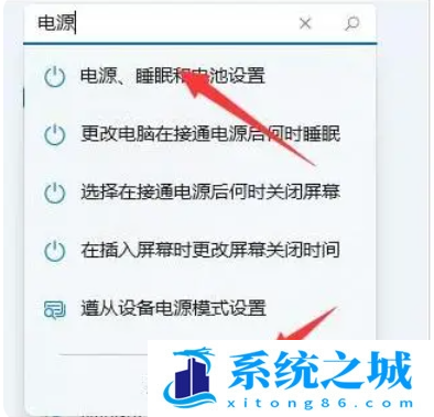 1、首先通过降频来降低问题,打开系统设置选项,我们在左上角搜索“电源”,点击“显示所有结果”选项。