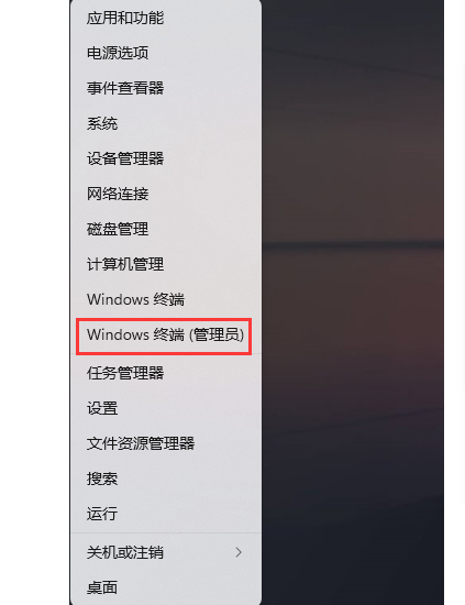 步骤一:首先,按键盘上的 Win + X 组合键,或右键点击任务栏底部的Windows开始图标,然后在打开的隐藏菜单项中,选择Windows 终端 (管理员)。